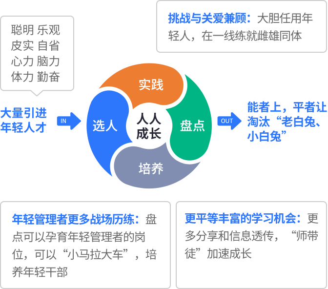 搭建百花齐放、生机勃勃、有利于人人成长的组织环境,为个人成长匹配更多的有效资源。